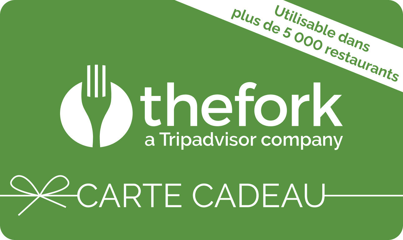 La Carte Cadeau TheFork est une attention ludique et gourmande qui peut être utilisée dans plusieurs milliers de restaurants partenaires pour déguster des plats régionaux, internationaux, gastronomiques. Tous les services de TheFork sont cumulables avec la Carte Cadeau: un service de réservation 24 h/24 avec une confirmation immédiate, toutes les promotions spéciales TheFork et le programme de fidélité.